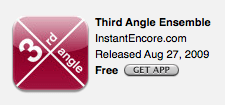 Local new music ensemble Third Angle now has an app available (via InstantEncore.com) on the iTunes App Store. It works on either the iPhone or iPod Touch. You can get it here (link opens in iTunes).